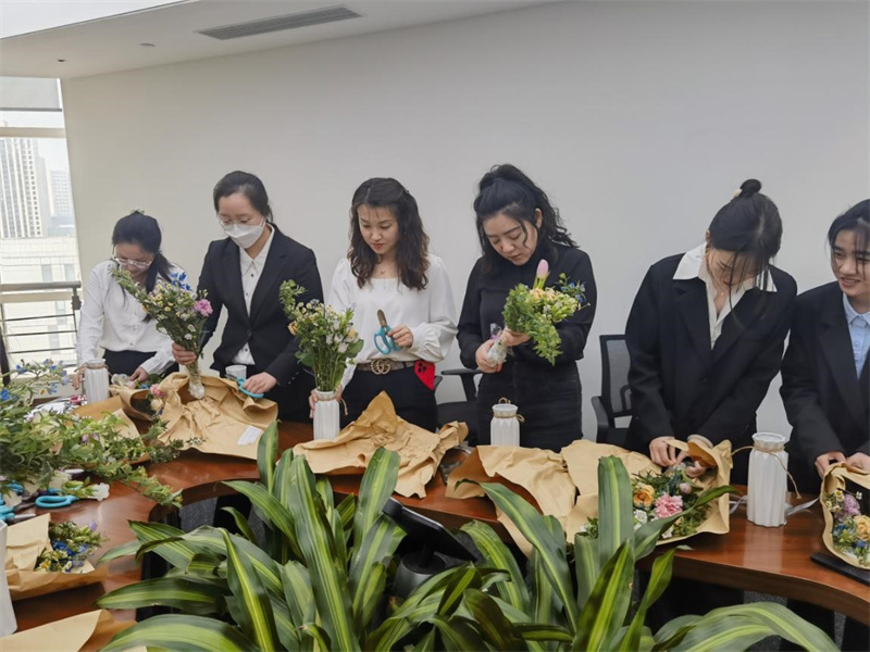 最美不過三月天,花開成海,春意盎然。為慶祝“三八”國(guó)際勞動(dòng)?jì)D女節(jié)的到來,提升審美修養(yǎng),3月8日,陽光麗景開展了“三八”婦女節(jié)藝術(shù)插花主題活動(dòng)。活動(dòng)邀請(qǐng)了花藝?yán)蠋煬F(xiàn)場(chǎng)授課,全體女員工積極參與,共赴美好花事。
